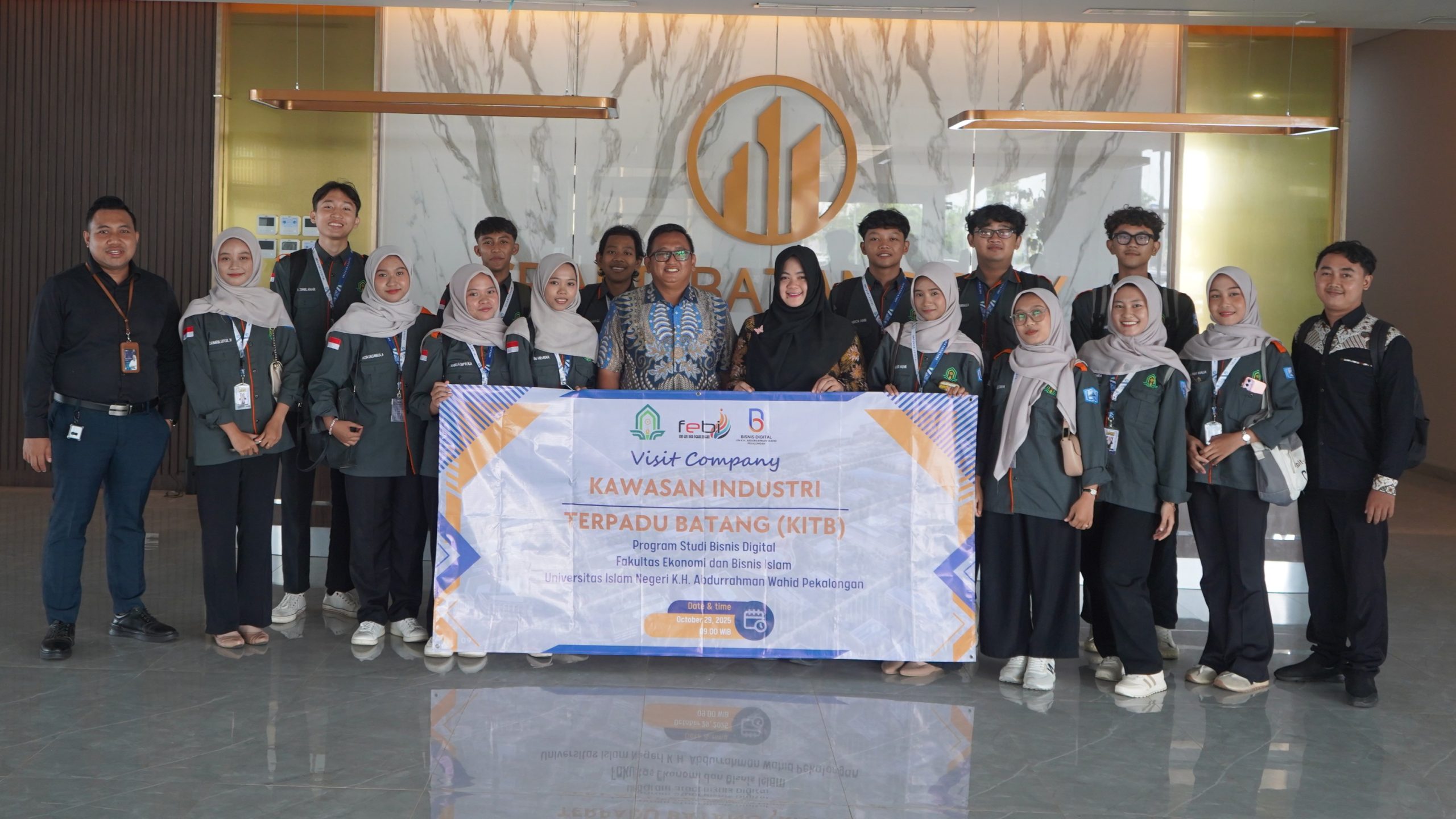 Pekalongan, 29 Oktober 2025 – Himpunan Mahasiswa Program Studi (HMPS) Bisnis Digital UIN K.H. Abdurrahman Wahid Pekalongan kembali menghadirkan kegiatan pembelajaran langsung di dunia industri melalui agenda Company Visit. Kegiatan ini bertempat di PT Kawasan Industri Terpadu Batang (KITB) dan mengusung tema “Digital Steps Towards Industrial Innovation”. Program ini bertujuan memberi pengalaman nyata kepada mahasiswa mengenai penerapan digitalisasi dan inovasi teknologi dalam kawasan industri berskala nasional.